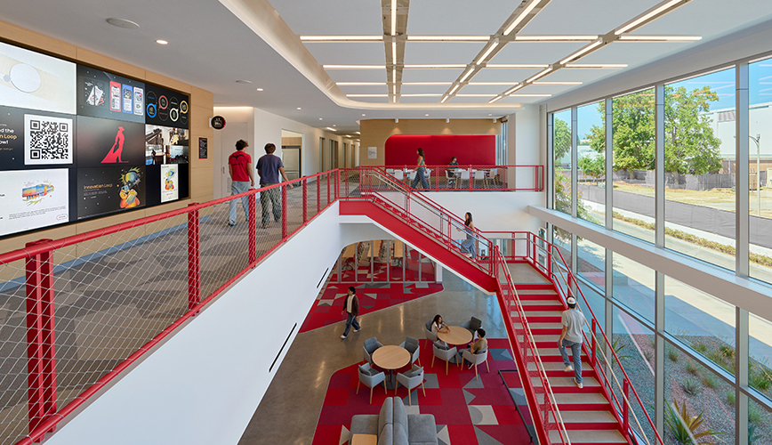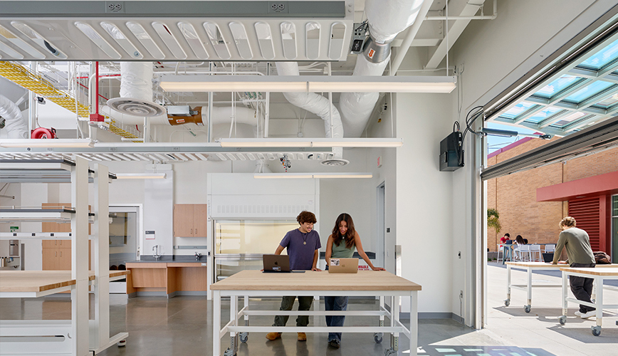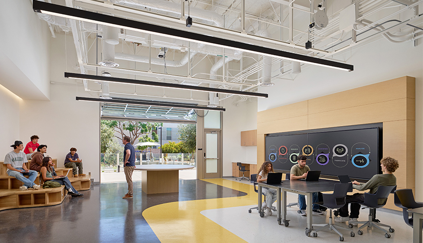 This 34,000 GSF project is powered by cutting-edge technology to advance collaboration and interdisciplinary design and research, including labs for engineering, prototype creation, pre-manufacture, and iterative design. Flexible space for interdisciplinary teams to collaborate, innovate, and incubate is included. The project also includes a campus and community maker-space as well as student showcase space to inspire student curiosity and creativity.