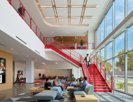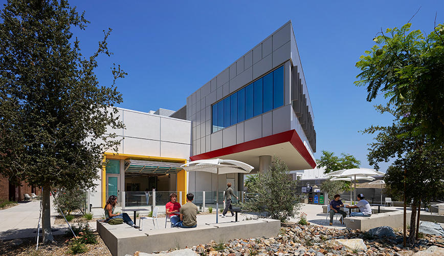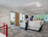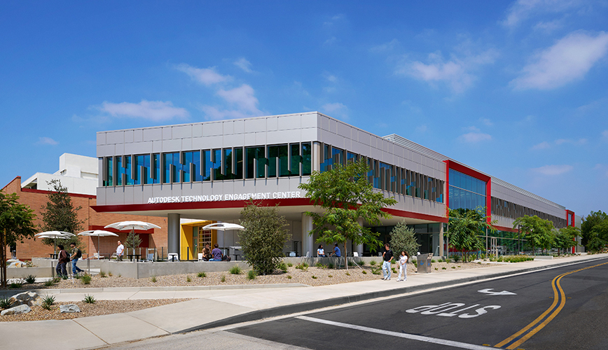 The Autodesk Technology Engagement Center provides a new, modern, state-of-the-art facility, creating a new identity for the College and University at a prominent campus location. Additional site improvements include outdoor gathering space, seating areas, and hands-on STEM activity areas.
